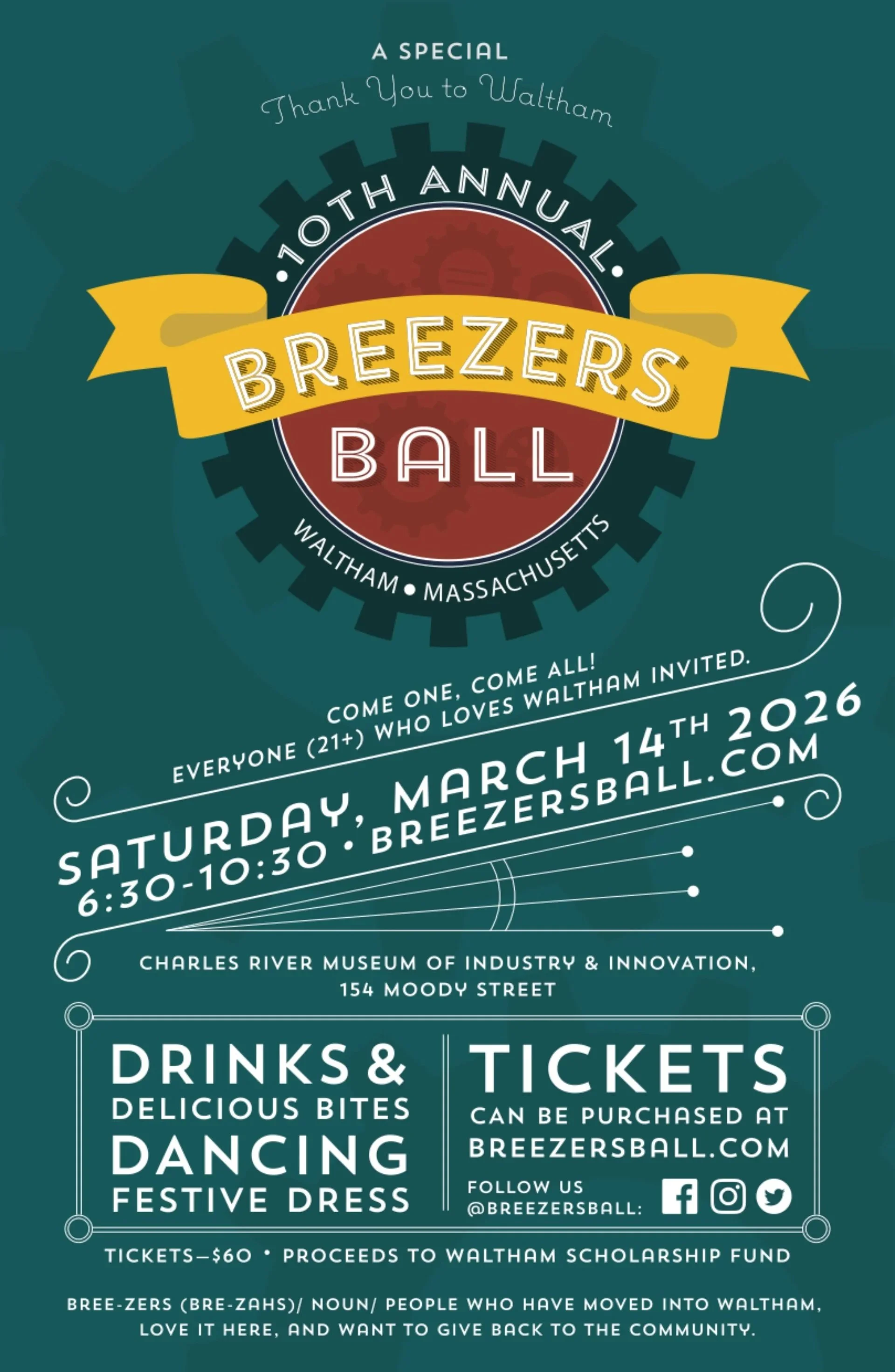 Play dress-up, enjoy the company of friends new and old, sample tasty treats from many of Waltham’s best restaurants, and dance the night away…